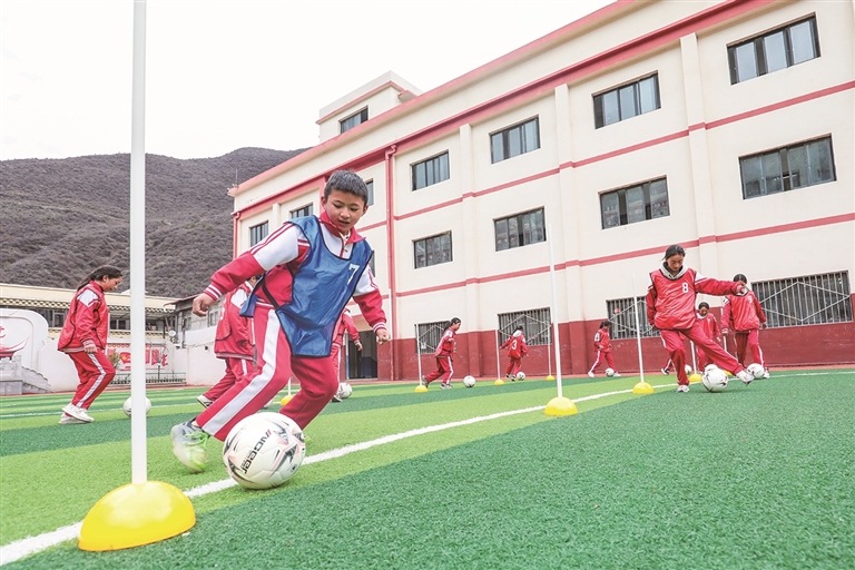 འབར་ཁམས་གྲོང་ཁྱེར་གྱི་སློབ་མ་རྐང་རྩེད་སྤོ་ལོར་རོལ་བ།