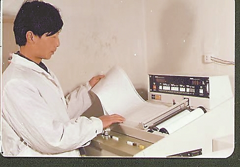 འདི་ནི་1989ལོར་བརྟག་བཤེར་མི་སྣས་ཞིབ་ཐོན་འཇལ་ཆས་ཆེ་གྲས་དང་པོ་བཀོལ་སྤྱོད་བྱེད་བཞིན་པ། (རང་སྐྱོང་ལྗོངས་བཟའ་རིགས་སྨན་རྫས་བརྟག་བཤེར་ཞིབ་འཇུག་ཁང་གིས་མཁོ་འདོན་བྱས་པའི་པར)