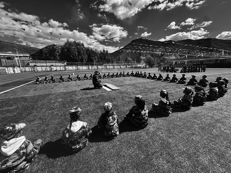 ད་ཐེངས་ཀྱི་བྱེད་སྒོར་བོད་ལྗོངས་དམག་ཞབས་ཐིམ་པའི་དམག་མིའི་ལས་ཞུགས་ལས་གཏོད་གླིང་ཆ་འཕྲིན་ཚན་རྩལ་ཚད་ཡོད་ཀུང་སིའི་རྒྱལ་སྲུང་སློབ་གསོའི་གསོ་སྦྱོང་རྟེན་གཞིའི་རྩལ་ཁྲིད་དགེ་རྒན་གྱིས་རྒྱལ་དར་ཆེན་པོ་ཞིག་ཁྱེར་ནས་རྒྱལ་དར་གྱི་ཐིག་རིས་དང་སྐར་ལྔའི་དར་དམར་གྱི་ཆེ་ཆུང་སོགས་གསལ་འགྲེལ་བྱས་པ་རེད། དེ་དང་ཆབས་ཅིག་གསར་བརྗེའི་སྔོན་བྱོན་པས་རྒྱལ་དར་སྲུང་བའི་གཏམ་རྒྱུད་དང“གསར་བརྗེའི་གློག་བརྙན་ཐུང་གྲས”ཟུང་འབྲེལ་བྱས་པ་དང་། གནམ་བདེ་སྒོ་མོ་ཆེར་རྒྱལ་དར་སྒྲེང་བའི་བརྙན་ཐུང་བསྟན་ཞིང་། རྒྱལ་གླུ་བཏང་མ་ཐག་སློབ་མ་ཚོས་རང་འགུལ་ངང་ཡར་ལངས་ཏེ་མིག་འདུད་ཞུས་པ་རེད།