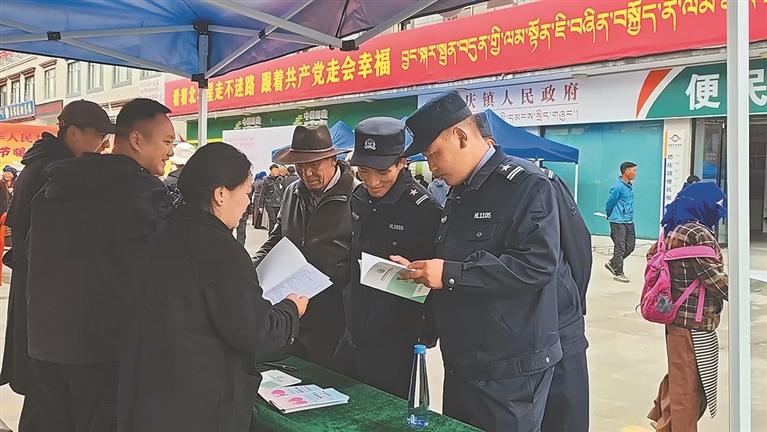 འདི་ནི་བདེ་ཆེན་གྲོང་རྡལ་གྱི་འབྲེལ་ཡོད་འོས་འགན་རྐང་འཛིན་པས་མང་ཚོགས་ལ་སྲིད་ཇུས་འགྲེལ་བཤད་རྒྱག་བཞིན་པ།