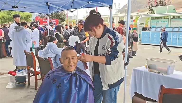 འདི་ནི་མང་ཚོགས་ལ་སྐྲ་བཞར་རོགས་བྱེད་བཞིན་པ།