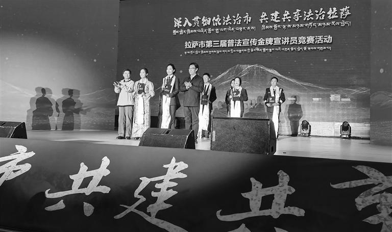ཉེ་ཆར། ལྷ་ས་གྲོང་ཁྱེར་གྱི་བཅའ་ཁྲིམས་ཁྱབ་གདལ་དྲིལ་བསྒྲགས་ཀྱི་རྩེར་སོན་སྒྲོག་འགྲེལ་པའི་འགྲན་བསྡུར་སྐབས་གསུམ་པ་ཀྲོའུ་ཅི་གསོལ་མགྲོན་ཁང་གི་བོད་ལྗོངས་ཚོམས་ཆེན་དུ་ཐུགས་གྲ་ལེཌ་འགྲིག་བྱུང་ཞིང་། ད་ཐེངས་ཀྱི་འགྲན་བསྡུར་རིང“ཁྲིམས་ལྟར་གྲོང་ཁྱེར་བཅོས་སྐྱོང་ལག་བསྟར་གཏིང་ཟབ་བྱས་ནས་ཁྲིམས་སྐྱོང་ལྷ་ས་མཉམ་སྐྲུན་མཉམ་སྤྱོད་བྱེད”ཅེས་པ་བརྗོད་དོན་གཙོ་བོར་བྱས་ཏེ། གྲ་སྒྲིག་འགྲན་བསྡུར་ནང་བདམས་ཐོན་བྱུང་བའི་བདམས་ཐོན་པ་9ཡིས་གར་སྟེགས་གཅིག་ཏུ་འགྲན་བསྡུར་བྱས་མཐར་མི་6ལ“རྩེར་སོན་སྒྲོག་འགྲེལ་པའི”མཚན་སྙན་ཐོབ་ཡོད།