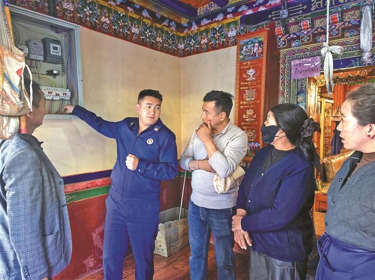 འདི་ནི་ལྷ་ས་གྲོང་ཁྱེར་མེ་གསོད་རོགས་སྐྱོབ་ཉིང་ལག་རུ་ཁག་གི་དྲིལ་བསྒྲགས་པས་དགོན་སྡེར་བསྐྱོད་དེ་ལས་དོན་པར་གློག་སྤྱོད་བདེ་འཇགས་སྐོར་འགྲེལ་བཤད་རྒྱག་བཞིན་པ།