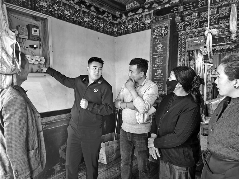 འདི་ནི་ལྷ་ས་གྲོང་ཁྱེར་མེ་གསོད་རོགས་སྐྱོབ་ཉིང་ལག་རུ་ཁག་གི་དྲིལ་བསྒྲགས་པས་དགོན་སྡེར་བསྐྱོད་དེ་ལས་དོན་པར་གློག་སྤྱོད་བདེ་འཇགས་སྐོར་འགྲེལ་བཤད་རྒྱག་བཞིན་པ།