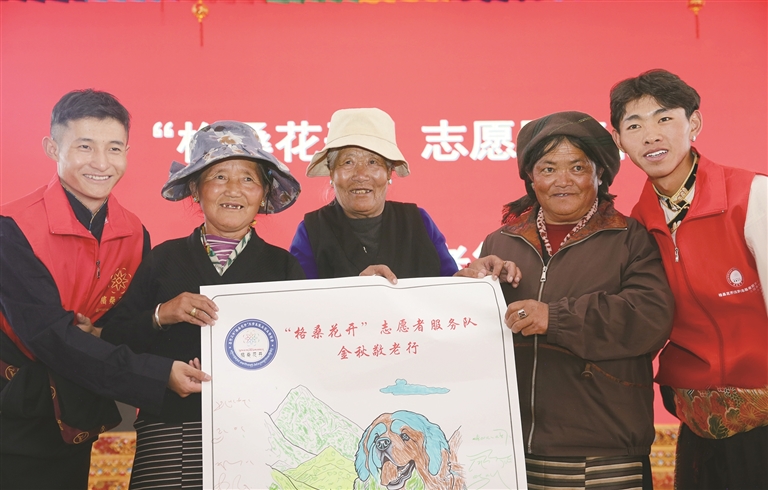 ཉེ་དུས་སྐབས་བདུན་པའི་མལ་གྲོ་གུང་དཀར་གྱི“སྐལ་བཟང་མེ་ཏོག་བཞད”ཅེས་པའི་དང་བླངས་ཞབས་ཞུའི་རུ་ཁག་གིས་རྫོང་རྒན་གསོ་ཁང་དུ་བསྐྱོད་དེ། “སྟོན་དུས་སུ་དྲོ་སྐྱིད་སྦྱིན། རྒན་རྒོན་ལ་བསྙེན་བཀུར་བྱེད་པ”བརྗོད་དོན་གཙོ་བོར་བྱས་པའི་དང་བླངས་བྱེད་སྒོ་སྤེལ་ནས་རྒན་རྒོན་ལ་བརྩི་བཀུར་ཞུ་བའི་སྤྱོད་བཟང་ལག་ལེན་དང་སྤྱི་ཚོགས་ཀྱི་བརྩེ་སེམས་བརྒྱུད་སྤྲོད་བྱས་པ་རེད། ཞབས་ཞུ་རུ་ཁག་གི་འགན་འཁུར་བས་རྒན་རྒོན་གྱི་དགོས་མཁོར་རྒྱུན་མཐུད་དོ་ཁུར་བྱས་ཏེ་དང་བླངས་སྙིང་སྟོབས་སྐལ་བཟང་མེ་ཏོག་ཇི་བཞིན་ལྷུག་པོར་བཞད་པར་བྱས་ནས། གཞི་རིམ་གྱི་བསམ་པའི་དཔལ་ཡོན་འཛུགས་སྐྱོང་ལ་ལང་ཚོའི་སྟོབས་ཤུགས་སྣོན་རྒྱུ་ཡིན་ཞེས་བརྗོད་པ་རེད།