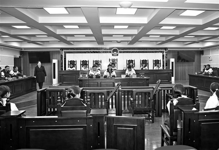 ཟླ་3ཚེས་17ཉིན། ལྷོ་ཁ་གྲོང་ཁྱེར་འབྲིང་རིམ་མི་དམངས་ཁྲིམས་ཁང་གིས་གྲོང་ཁྱེར་མཐོ་འབྲིང་གཉིས་པའི་དགེ་སློབ་ཀྱི་འཐུས་མི་ཁྲིམས་ཁང་དུ་ཁྲིམས་འཛིན་གྱི་དབང་གྲགས་ཚོར་བ་དང་བཅའ་ཁྲིམས་ཀྱི་ཤེས་བྱ་སྦྱོང་བར་གདན་དྲངས་ཏེ། གསོན་ཉམས་དོད་པའི་ཁྲིམས་སྐྱོང་སློབ་གསོའི་བྱེད་སྒོ་ཞིག་སྤེལ་བ་རེད། འདི་ནི་སློབ་མའི་འཐུས་མིས་ལྷོ་ཁ་གྲོང་ཁྱེར་འབྲིང་རིམ་མི་དམངས་ཁྲིམས་ཁང་གི་ཚན་རྩལ་ཁྲིམས་རར་དབྱིངས་ཞུགས་རྣམ་པའི་ཉམས་ལེན་བྱེད་བཞིན་པ།