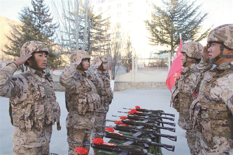 དམག་མི་གསར་པའི་གཟི་བརྗིད་ཀྱི་འདུ་ཤེས་དང་། འགན་འཁྲིའི་འདུ་ཤེས། ལས་འགན་སྒྲུབ་སེམས་བཅས་སྐུལ་སློང་གིས་དམག་མི་བྱས་ནས་དམག་རྒྱག་དང་དམག་སྦྱོང་བྱས་ནས་དམག་རྒྱག་གི་བསམ་བློའི་གོ་རྟོགས་ཆེ་རུ་གཏོང་ཆེད། ཉེ་ཆར། དྲག་ཆས་ཉེན་རྟོག་ལྷ་ས་ཉིང་ལག་རུ་ཁག་གི་རུ་འབྲིང་ཞིག་གིས་མེ་མདའ་སྤྲོད་པའི་མཛད་སྒོ་འཚོཌ་པ་རེད།