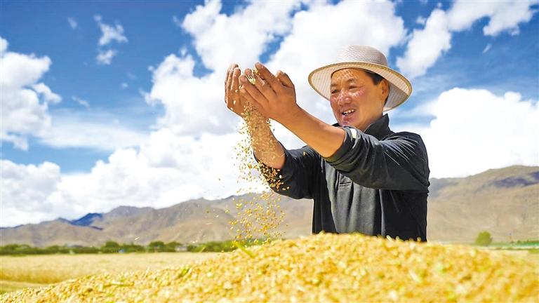 2023ལོར་རང་ལྗོངས་ཀྱི་འབྲུ་རིགས་ཐོན་སྐྱེད་ལ་སླར་ཡང་འབྲས་བཟང་ཐོབ་ཅིང་། འབྲུ་རིགས་ཁྱོན་མུའུ་ཁྲི་291.88བཏབ་པའི་ནང་། ནས་མུའུ་ཁྲི་222.87བཏབ་པར་ཐོན་འབབ་ཏུན་ཁྲི་108.87ཟིན་ནས་རྨོ་ཞིང་སྲུང་སྐྱོང་དང་འབྲུ་རིགས་བདེ་འཇགས་ཀྱི་འགན་འཁྲི་ཁྱོན་ཡོངས་ནས་དོན་འཁྱོལ་ཐུབ་ཡོད། ཚད་གཞི་མཐོ་བའི་ས་ཞིང་མུའུ་ཁྲི་67.4རྒྱུན་མཐུད་སྐྲུན་པ་དང་ས་རྒོད་མུའུ་ཁྲི་2.39སྒྱུར་བཀོད་ལེགས་སྒྲུབ་བྱས་ཡོད། ནས་ཀྱི་སོན་བཟང་ཁྱབ་ཚད་93%ཟིན་པ་དང་ལོ་ཏོག་གཙོ་བོ(ནས)རྨོ་འདེབས་དང་བརྔ་བསྡུའི་ཕྱོགས་བསྡུས་འཕྲུལ་ཆས་ཅན་གྱི་ཚད་71%ཡན་ཟིན་ཡོད། དབུལ་ལོག་སྔོན་འགོག་གི་འགུལ་རྣམ་ལ་ལྟ་ཞིབ་ཚད་ལེན་དང་རོགས་སྐྱོར་གྱི་ལམ་སྲོལ་དོན་འཁྱོལ་ནན་པོ་བྱས་ཏེ། ལྟ་ཞིབ་ཚད་ལེན་གྱི་ཁྱབ་ཁོངས་སྒོར་7000(ཚུད་པ)མན་བར་རྒྱ་ཆེར་བཏང་བ་དང་། དབུལ་ལོག་སྔོན་འགོག་ལ་ལྟ་ཞིབ་ཚད་ལེན་དང་རོགས་སྐྱོར་བྱེད་པར་གཅིག་སྡུད་ཐོག་གྲལ་བཤེར་བྱས་ཏེ། སྡེ་ཚན་གྱི་ཉེན་ཟོན་སྔོན་བརྡའི་མཉམ་འགུལ་བྱེད་ཤུགས་ཆེ་རུ་བཏང་ཞིང་། “དུད་ཚང་རེར་སྲིད་ཇུས་རེའི”རོགས་སྐྱོར་བྱེད་ཐབས་དོན་འཁྱོལ་བྱས་ནས་སྔ་ཙམ་ཤེས་རྟོགས་དང་། སྔ་ཙམ་ཐེ་ཇུས། སྔ་ཙམ་རོགས་སྐྱོར་བཅས་ཏན་ཏིག་བྱས་པ་རེད།