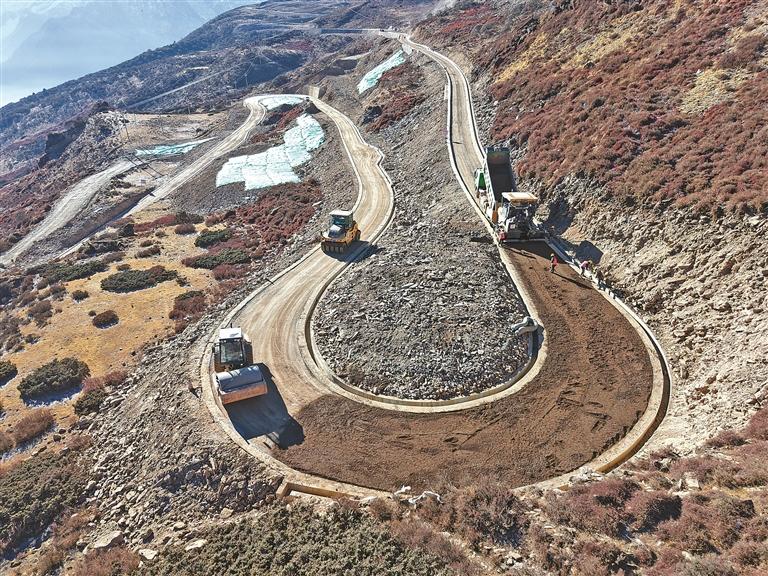 ཀྱག་ཀྱོག་གི་རི་ལམ་བརྒྱུད་གསར་འགོད་པ་སྐྱིད་གྲོང་རྫོང་རྒྱལ་ལམ་216གི་ལམ་མདོ་ནས་ས་ལེ་ཤང་བར་གྱི་གཞུང་ལམ་གྱི་ལས་ཡུལ་དུ་འབྱོར་སྐབས། སྤྱིའི་རིང་ཚད་ལ་སྤྱི་ལེ་34.5ཡོད་པའི་གཞུང་ལམ་ཐོག་འཆར་གཞི་ལྟར་གོ་རིམ་ལྡན་པའི་ངང་ཨར་ལས་བྱེད་བཞིན་འདུག མིག་སྔར་རིམ་རྩིས་བརྒྱབ་ན། ཐོན་རྫས་རིན་ཐང་སྒོར་དུང་ཕྱུར་1.5ཟིན་པ་དེས་གན་རྒྱའི་དངུལ་འབོར་གྱི་85%བཟུང་ཡོད།