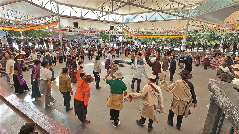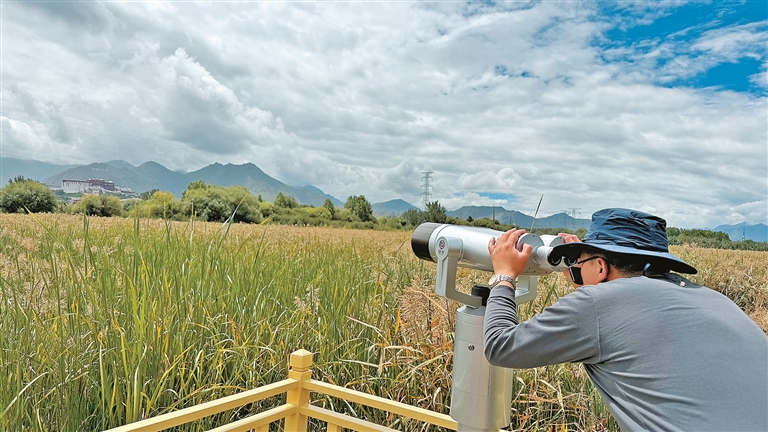 འདི་ནི་གྲོང་མིས་ལྷ་སའི་མཐུན་སྒྲིལ་སྤྱི་གླིང་དུ་ལྟ་སྐོར་དང་འཆམ་འཆམ་བྱེད་བཞིན་པ།