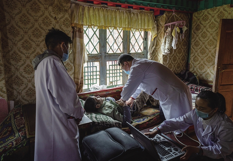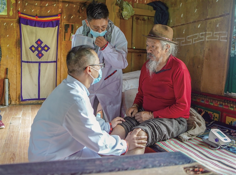 ཟླ་6ཚེས་12ཉིན་གྱི་སྔ་དྲོའི་ཆུ་ཚོད་བཅུ་པར་ཀོང་ཏུང་ཀྲུའུ་ཧའེ་གྲོང་ཁྱེར་མི་དམངས་སྨན་ཁང་གི་བོད་སྐྱོར་སྨན་བཅོས་རུ་ཁག་ཁག་བདུན་པའི་རུ་དཔོན་ཝང་ཀྲེན་ཅང་དང་། རུ་མི་ཁྲེན་པིང་དང་ཝང་ཐུང་ཤུས་དང་། ས་གནས་ཀྱི་ན་གཞོན་སྨན་པ་ཉི་མ་ཡེ་ཤེས་བཅས་ཀྱིས་སྨན་བཅོས་སྒྲིག་ཆས་དང་སྨན་ཁྱེར་ནས་བོད་ལྗོངས་སྨན་གླིང་གྲོང་ཁྱེར་མི་དམངས་སྨན་ཁང་ནས་རླངས་འཁོར་ལ་བསྡད་དེ་སྤྱི་ལེ་30ལྷག་ཙམ་གྱི་སར་ཡོད་པའི་ཐོན་པ་རུང་གྲོང་ཚོར་བསྐྱོད་ནས་ནད་པར་སྨན་བཅོས་བྱས་པ་རེད།