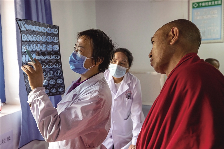 ཟླ་7ཚེས་7ཉིན་ནས་ཚེས་14ཉིན་བར། 2023ལོའི“སེམས་མཐུན། ཀྲུང་གོའི་སེམས་པ་མཉམ་དུ་གཏོད”ཅེས་པའི་བོད་ལྗོངས་ཆབ་མདོའི་བྱ་སྤྱོད་ཀྱི་སྨན་བཅོས་སྤྱི་ཕན་བྱེད་སྒོ་ཆེ་གྲས་བོད་ལྗོངས་ཆབ་མདོ་གྲོང་ཁྱེར་གྱི་ཆུས་དང་རྫོང་11ཏུ་བསྐྱོད་པའི་བརྗོད་དོན་གཙོ་བོའི་སྤྱི་ཕན་བྱེད་སྒོ་སྤེལ་ཅིང་། དེའི་ནང་ས་གནས་དེ་གའི་མི་དམངས་ལ་སྨན་རིན་མི་དགོས་པའི་འོས་འགན་སྨན་བཅོས་དང་། ནད་གཞི་དབྱེ་བཤེར། ས་མཐོའི་གཤགས་བཅོས། བདེ་ཐང་ཚན་རིག་ཁྱབ་གདལ། གཅེས་སེམས་ཞལ་འདེབས་འབུལ་བ་སོགས་ཚུད་ཡོད། བྱེད་སྒོ་དེ་ནི་ཀྲུང་གུང་ཀྲུང་དབྱང་འཐབ་ཕྱོགས་གཅིག་གྱུར་པུའུ་དང་རྒྱལ་ཁབ་འཕྲོད་བསྟེན་བདེ་ཐང་ཨུ་ལྷན་གྱིས་མཛུབ་ཁྲིད་དང་། ཀྲུང་གོ་བོད་ལྗོངས་རིག་གནས་སྲུང་སྐྱོང་དང་འཕེལ་རྒྱས་མཐུན་ཚོགས་དང་། བོད་རང་སྐྱོང་ལྗོངས་ཏང་ཨུད་འཐབ་ཕྱོགས་གཅིག་གྱུར་པུའུ། པེ་ཅིང་སེམས་མཐུན་མཉམ་གཏོད་སྤྱི་ཕན་ཐེབས་རྩ་ལྷན་ཚོགས་བཅས་ཀྱིས་གཙོ་གཉེར་བྱས་པ་ཞིག་རེད། བྱེད་སྒོ་དེར་པེ་ཅིང་ནས་ཡོང་བའི་སྨན་དོན་མི་སྣ་453དང་དང་བླངས་པ་ཁག་གཅིག་ཞུགས་ཡོད། འདི་ནི་ཟླ་7ཚེས་9ཉིན་བོད་ལྗོངས་ཆབ་མདོ་ཁ་རུབ་གྲོང་རྡལ་གྱི་འོས་འགན་སྨན་བཅོས་བྱ་ཡུལ་དུ་པེ་ཅིང་ཤིས་ཡོན་སྨན་ཁང་ནུ་མའི་གཤེར་རྨེན་ཚན་ཁག་གི་གཙོ་བཅོས་སྨན་པ་དབྱང་ལི་ཡིས་ནད་པའི་Xསྦྱིན་ཤོག་ལ་དབྱེ་ཞིབ་བྱེད་བཞིན་པ།