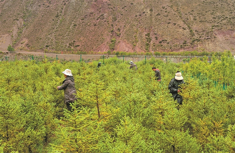 ཉེ་བའི་ལོ་ཤས་རིང་། རང་ལྗོངས་ཀྱིས་སྡོང་ཕྲུག་ར་བའི་སོན་བཟང་འདེམས་གསོའི་ལས་དོན་ལ་སྐུལ་འདེད་ཤུགས་ཆེན་གཏོང་བ་དང་སོན་སྤུས་ཐོན་ཁུངས་ལ་བརྟག་དཔྱད་ཧུར་ཐག་བྱས་ནས། སོན་བཟང་འདེམས་གསོ་ཁྱབ་གདལ་གཏོང་བར་འདེགས་སྐྱོར་བྱས་པ་དང་། ད་ཡོད་ཀྱི་སོན་རྒྱུའི་ཐོན་ཁུངས་ཉར་ཚགས་བྱེད་པའི་རྨང་གཞིའི་ཐོག་ནགས་ཤིང་སོན་རྒྱུ་ལེགས་སྒྱུར་དང་། ནགས་ཤིང་ནུས་ཆེ་འདེབས་གསོ། ཤིང་སོན་ར་བ་ཐོན་འབབ་མཐོ་ལ་བརྟན་པོ་ཡོང་བ་སོགས་ལ་ཞིབ་འཇུག་བྱས་ཏེ། སོན་མྱུག་གསོ་སྤེལ་བྱེད་ནུས་ཆེ་རུ་བཏང་ནས། ལྡོག་འགོག་རང་བཞིན་ཆེ་བ་དང་ཐཱན་འདུས་ཚད་མཐོ་བའི་ཤིང་སོན་གསར་པ་འདེམས་གསོ་བྱས་པ་རེད། འདི་ནི་ཆབ་མདོ་གྲོང་ཁྱེར་ནགས་ལས་ཚད་ཡོད་ཀུང་སིའི་ལས་མིས་སྡོང་ཕྲུག་སྐྱེ་ཚུལ་ལ་ལྟ་ཞིབ་བྱེད་བཞིན་པ།