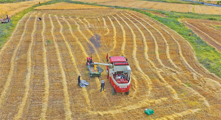 འདི་ནི་རྫོང་དེའི་ཐང་སྐྱ་ཤང་མོ་གྲོང་གྲོང་ཚོའི་ཡུལ་མིས་འཕྲུལ་འཁོར་བཏང་ནས་ལོ་ཏོག་བརྔ་བསྡུ་བྱེད་བཞིན་པ།