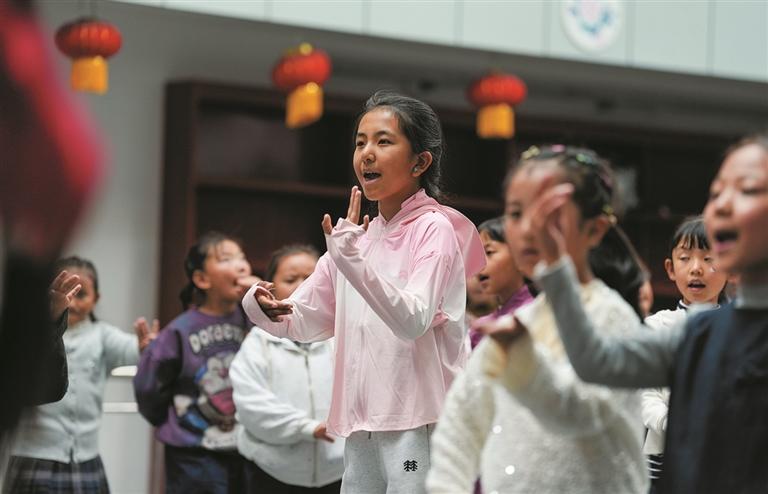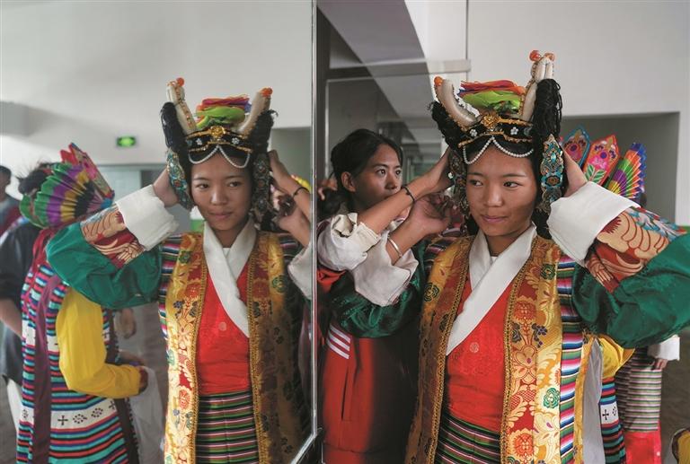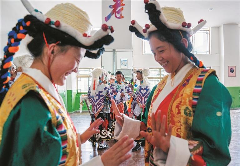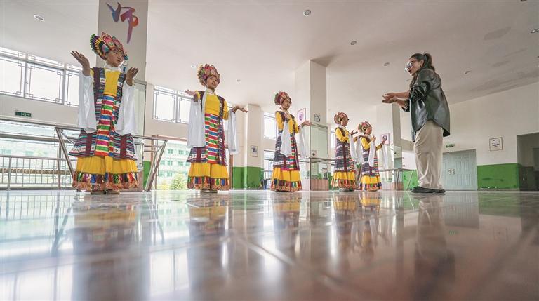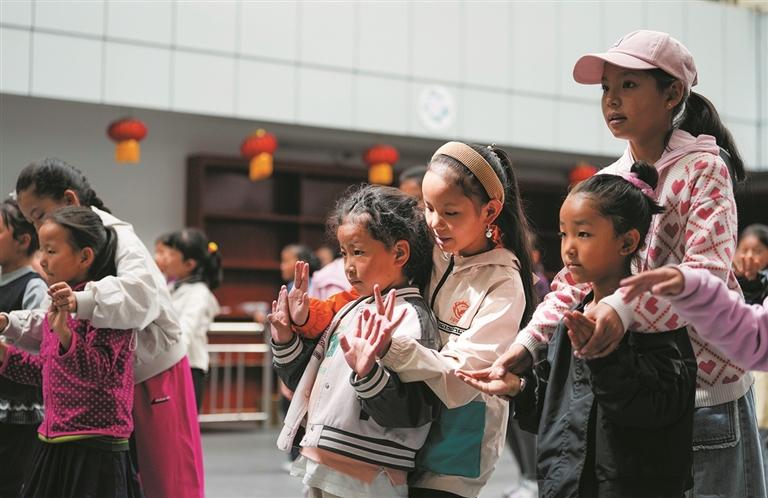 བློ་རིག་བཀྲ་བའི་བྱིས་པས་འཁྲབ་རྩལ་སྦྱངས། ལྷ་མོའི་སྒྱུ་རྩལ་མ་ཉམས་གོང་དུ་སྤེལ།
