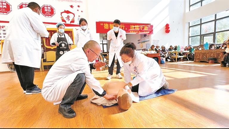 ཉེ་ཆར། སྟོད་ལུང་བདེ་ཆེན་ཆུས་རྒུ་རུམ་གྲོང་རྡལ་རྒན་རྒོན་གྱི་ཉིན་མོའི་ལྟ་སྐྱོང་ལྟེ་གནས་ཀྱིས་བོད་རང་སྐྱོང་ལྗོངས་མི་དམངས་སྨན་ཁང་གཉིས་པ་དང་མཉམ་དུ་དོན་སྙིང་ཧ་ཅང་ཆེན་པོ་ལྡན་པའི་འོས་འགན་སྨན་བཅོས་བྱེད་སྒོ་སྤེལ་ནས། རྒན་རྒོན་ཚོའི་ལུས་སེམས་བདེ་ཐང་ལ་སེམས་ཁུར་བྱེད་པའི་བྱམས་བརྩེའི་དྲོ་སྐྱིད་སྦྱིན་པ་རེད། ཉིན་མོའི་ལྟ་སྐྱོང་ལྟེ་གནས་ཀྱི་ལས་དོན་པས་ད་རེས་ཀྱི་གོ་སྐབས་ལ་དམ་འཛིན་བྱས་ནས་སྨན་དོན་པའི་གམ་ནས་མྱུར་སྐྱོབ་ལག་རྩལ་སྦྱངས་ཤིང་། འདི་ནི་ལས་དོན་པས་དྲན་པ་གསོ་ཐབས་སྦྱོང་བཞིན་པ།