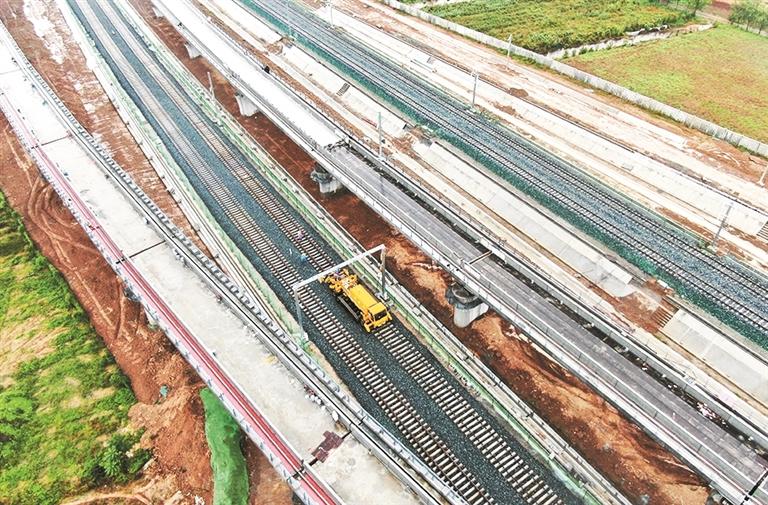 ཟླ་10ཚེས་11ཉིན། ཤིས་ཁང(ཧྲའན་ཤིས་ཤིས་ཨན་ནས་ཨན་ཁང་བར)མྱུར་བགྲོད་ལྕགས་ལམ་འཛུགས་སྐྲུན་བྱ་ཡུལ་དུ་ཨར་ལས་མི་སྣས་རིང་ཚད་སྨི་500ཡི་སྲུབས་མེད་ལམ་ལྕགས་དེ་རྡོ་ཧྲུག་མེད་པའི་འཁོར་ལམ་ཐོག་བཏིང་བ་དེ་ཐོག་ནས་ཤིས་ཁང་མྱུར་བགྲོད་ལམ་ཐིག་ཧྲིལ་པོ་དངོས་སུ་གདིང་འགོ་ཚུགས་པ་མཚོན་ཡོད། ཆིན་ལིང་རི་རྒྱུད་ཀྱི་ཤིས་ཁང་མྱུར་བགྲོད་ལྕགས་ལམ་བརྒྱུད་པ་དང་གསར་དུ་བསྐྲུན་པའི་མ་ལམ་གྱི་ལམ་ཐིག་ཧྲིལ་པོར་ལམ་ཐག་སྤྱི་ལེ་171དང་མྱུར་ཚད་ཆུ་ཚོད་རེར་སྤྱི་ལེ་350ཟིན་གྱི་ཡོད།