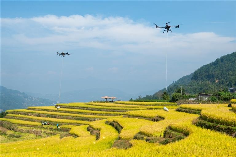 མིག་སྔ་ནི་ཧུའུ་པེ་ཞིང་ཆེན་དབྱི་ཁྲང་གྲོང་ཁྱེར་ཙེ་ཀུའེ་རྫོང་གི་རི་མཐོའི་ཆུ་གྲང་འབྲས་བསྡུ་བའི་དུས་ཚིགས་ཟིན་ཞིང་། ཡུལ་དེའི་ཞིང་པས་བརྔ་བསྡུ་འཕྲུལ་འཁོར་དང་མི་མེད་གནམ་གྲུ་སོགས་སྤྱད་ནས་བརྔ་བསྡུ་དང་དབོར་འདྲེན་བྱས་ནས་སྟོན་འབྲུ་དུས་ཐོག་ཏུ་འབྲུ་མཛོད་ནང་བཀར་འཇུག་བྱས་ཡོད།