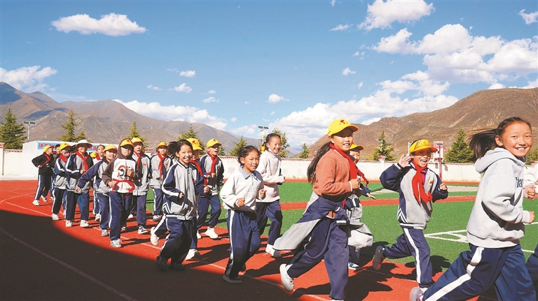 ཉེ་བའི་ལོ་ཤས་རིང་། བོད་ཀྱི་སློབ་གྲྭ་འབྲིང་ཆུང་ཁག་གིས་ཕིང་ཕང་སྤོ་ལོ་དང་། ལག་རྩེད་སྤོ་ལོ། ཐག་མཆོང་། རྐང་རྩེད་སྤོ་ལོ་བཅས་དང་། དེ་བཞིན་ཁྱད་ལྡན་གྱི་རླུང་འཕྲིན་ལུས་སྦྱོང་སོགས་གཙོ་བོར་བྱས་པའི་སློབ་གསེང་གི་བྱེད་སྒོ་ཆེན་པོ་སྤེལ་ཏེ། སློབ་མའི་སློབ་གསེང་གི་བྱེད་སྒོ་ཕུན་སུམ་ཚོགས་སུ་བཏང་བ་མ་ཟད། སློབ་མ་ཚོའི་ལུས་རྩལ་སྤྲོ་སེམས་ཀྱང་འཕེལ་བར་བྱས་ནས། སློབ་མས་ལུས་སྦྱོང་གི་སྤྲོ་བ་ཉམས་སུ་མྱོང་ཞོར་སེམས་ཁམས་དང་གཟུགས་པོ་ཡག་ཏུ་འགྲོ་ཐུབ་པ་བྱས་ཤིང་། འདི་ནི་ལྷ་ས་གྲོང་ཁྱེར་མལ་གྲོ་གུང་དཀར་རྫོང་ནན་ཅིང་ཚོད་ལྟའི་སློབ་ཆུང་གི་ལོ་རིམ་བཞི་པའི་སློབ་མ་ཚོས་སློབ་གསེང་གི་ལུས་རྩལ་བྱེད་སྒོའི་ནང་ཞུགས་བཞིན་པ།