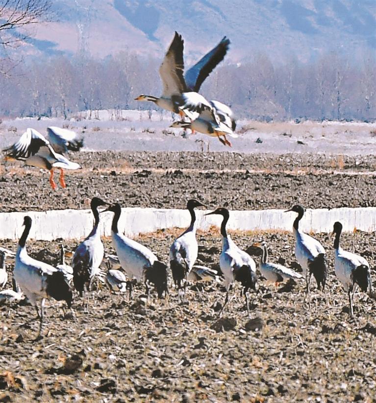 སྲོག་ཆགས་རང་གནས་སུ་ལོག་པ་ནི་སྐྱེ་ཁམས་ལེགས་སུ་ཕྱིན་པའི་གསོན་ཉམས་དོད་ཤོས་ཀྱི་མཚོན་ཚུལ་ཞིག་རེད། ལྷ་ས་གྲོང་ཁྱེར་ལྷུན་གྲུབ་རྫོང་གི་སྲུང་སྐྱོང་ཁུལ་དུ་ཁྲུང་ཁྲུང་སྐེ་ནག་ཡུལ་མིའི་སྒོ་རའི་ནང་བབས་ནས་བག་ཕེབས་ངང་ཟས་འཚོལ་བ་དང་། བྱང་རྩྭ་ཐང་གི་རྩྭ་ཆུ་འཛོམས་སར་དགོ་བ་གནས་སྤོ་བ་དང་བསྟུན་ནས་སྐོར་སྲུང་འབྲོག་པར་རྒྱང་ལྟ་བྱེད་པ། ཇོ་མོ་གླང་མའི་སྲུང་སྐྱོང་ཁུལ་དུ་པར་ཆས་ནང་གསའ་ཡང་ཡང་ཐོན་པ་བཅས་ལས་འདས་སོང་གཏོར་སྐྱོན་ཕོག་པའི་རྩྭ་ར་སླར་གསོ་བྱུང་བ་མཐོང་ཐུབ། སྲོག་ཆགས་དེ་དག་སྐྱེ་འཕེལ་བྱུང་བ་དེ་ཐོག་ནས་ས་མཐོའི་སྐྱེ་ཁམས་མ་ལག་གསོན་ཤུགས་རྒྱས་པ་མངོན་ཡོད།