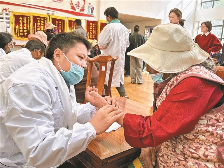 ཁོངས་གཏོགས་ཁུལ་གྱི་རྒན་རྒོན་གྱི་བདེ་ཐང་བདེ་རྩ་ཆེ་རུ་ཏན་ཏིག་བཏང་ནས“སྨན་བཅོས་དང་རྒན་གསོ་ཟུང་འབྲེལ”གྱི་ཞབས་ཞུའི་ཕན་འབྲས་ཐོན་པར་སྐུལ་འདེད་གཏོང་ཆེད། ལྷ་ས་གྲོང་ཁྱེར་སྟོད་ལུང་བདེ་ཆེན་ཆུས་རྒུ་རུམ་རྒན་རྒོན་ཉིན་མོའི་ལྟ་རྟོག་ལྟེ་གནས་ཀྱིས་ཉེ་ཆར་རྒན་རྒོན་གྱི་གཟུགས་པོར་བརྟག་དཔྱད་བྱེད་པའི་བྱེད་སྒོ་སྤེལ་བ་རེད།བྱེད་སྒོ་སྤེལ་རིང་། གཞོང་པ་ལྷ་ཆུ་བོད་སྨན་ཚད་ཡོད་ཀུང་སིའི་ཆེད་ལས་གསོ་བ་རིག་པའི་ཚོགས་པས་རྒན་རྒོན་ཚང་མར་བརྟག་དཔྱད་བྱས་ནས། རྒན་རྒོན་གྱི་གཟུགས་པོའི་གནས་ཚུལ་ལ་གཞིགས་ནས་སྒོར་ཁྲི་3.5རི་བའི་བོད་སྨན་སྤྲད་དེ་རྒན་རྒོན་ཚོས་སྨན་བཅོས་དང་རྒན་གསོ་ཟུང་འབྲེལ་གྱི་ཞབས་ཞུའི་དྲོ་སྐྱིད་ཚོར་བ་བྱས་པ་རེད།འདི་ནི་བྱེད་སྒོ་སྤེལ་ཡུལ་དུ་སྨན་པས་རྒན་རྒོན་ལ་རྩ་གཟིགས་གནང་བཞིན་པ།