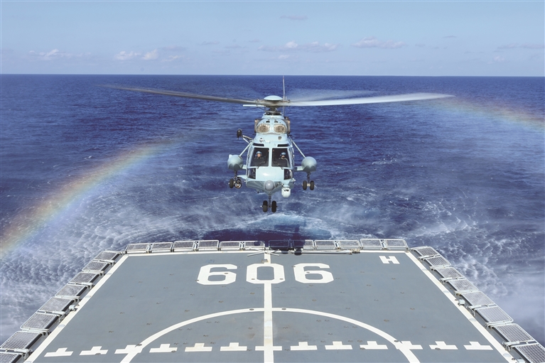 འདི་ནི་ནན་ཧྲ་ས་སྲུང་དཔུང་སྡེའི་རུ་ཆེན་ཞིག་གིས་གྲུ་གཟིངས་དང་དམག་གྲུ་མཐུན་སྦྱོར་གྱི་དམག་སྦྱོང་བྱེད་བཞིན་པ།