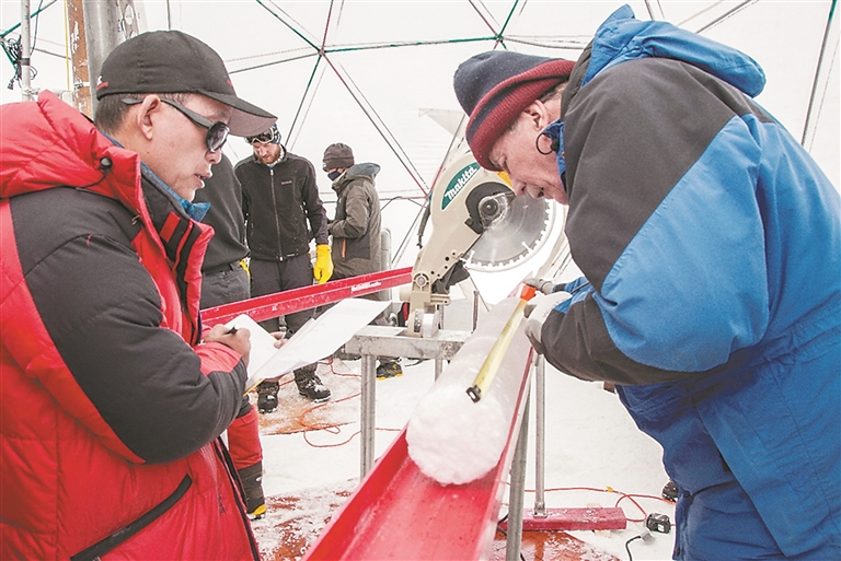 2024ལོར། ཀྲུང་ཨའི་མཉམ་འབྲེལ་ཚན་རིག་རྟོག་ཞིབ་རུ་ཁག་གི་རུ་མིས(གཡོན་གྱི་བཞི་པ་ཐང་ཕུའུ་སེན་ཡིན)བུ་རོགས་གངས་རིའི་འཁྱགས་ཐང་ནས་བླངས་པའི་འཁྱགས་སྙིང་གི་མ་དཔེར་ལྟ་ཞིབ་བྱེད་བཞིན་པ།