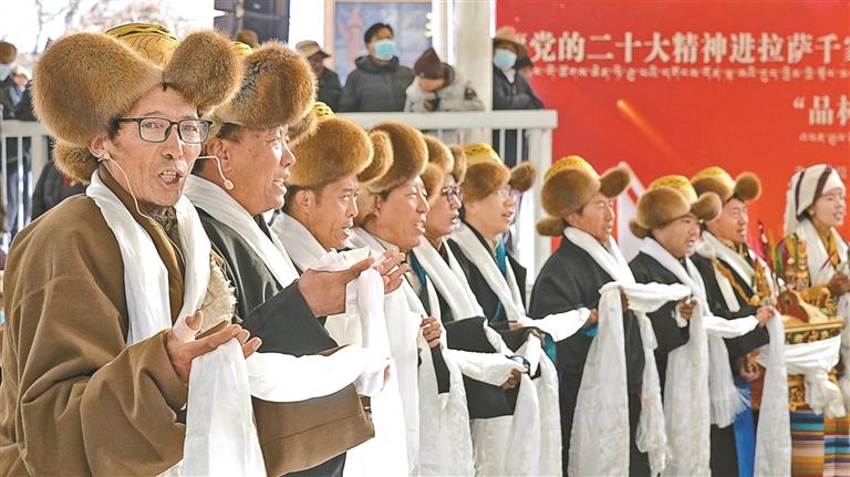 ཚོང་འདུས་སུ་དམངས་སྲོལ་གླུ་གར་གྱི་སྙན་འཇེབས་འགྱུར་ཁུག་གཅིག་རྗེས་གཉིས་མཐུད་ངང་རྣ་བར་གྲགས་འོང་ཞིང་། ལྷུན་གྲུབ་རྫོང་དམངས་ཁྲོད་གཞས་ཆེན་ཚོགས་པའི་རུ་མིས་ལུས་ལ་གཟབ་མཆོར་ལེགས་པར་སྤྲས་ཏེ་ཞབས་བྲོའི་སྟངས་སྟབས་འཁྲུག་པོ་དང་ཆབས་ཅིག་སྐད་གསང་མཐོན་པོས་གཞས་ཆེན་ལེན་བཞིན་ཡོད་པ་དང་། ལྷ་མོའི་འཁྲབ་ཚན་དུམ་བུ་འཁྲབ་པས་དེར་ཡོད་ཚང་མས་བོད་ཀྱི་རིག་གནས་ཀྱི་ངོ་མཚར་ལ་ཉམས་ལེན་གཏིང་ཟབ་ཐུབ་ཡོད། དེའི་ཁྲོད་ནས་ཡིད་དབང་འཕྲོག་ཤོས་ཤིག་ནི་རྒན་རྒོན་མོ་ཐྲོལ་རུ་ཁག་གི་ཉམས་འགྱུར་ལྡན་པའི་འཁྲབ་སྟོན་དེ་ཡིན་ཞིང་། སྲོལ་རྒྱུན་གྱི་བོད་ཆས་གྱོན་པའི་རྒན་རྒོན་ཚོས་བློ་གཤོགས་ཡངས་པོ་དང་བཅོས་མིན་གྱི་འཛུམ་མདངས་ལ་བརྟེན་ནས་བོད་མི་རིགས་ཀྱི་རྒྱན་གོས་ཀྱི་མཚར་སྡུག་དང་ཚེ་མཇུག་འཚོ་བའི་ཉམས་སྣང་མངོན་པར་བྱས་པ་རེད། ད་ཐེངས་ཀྱི་ལོ་གསར་མཁོ་ཆས་ཚོང་འདུས་ནི་ལྷུན་གྲུབ་རྫོང་གིས་ནང་མཁོ་རྒྱ་སྐྱེད་དང་གདིང་ཤུགས་སྔོག་འདོན་གཏིང་ཟབ་ཀྱིས་ཞིང་ལས་དང་། རིག་གནས། ཡུལ་སྐོར། ཚོང་ལས་བཅས་མཉམ་འདྲེས་ལ་སྐུལ་འདེད་གཏོང་བའི་གསོན་ཉམས་དོད་པའི་ལག་ལེན་ཞིག་རེད།