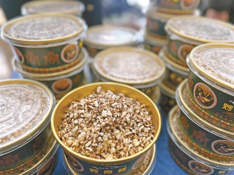 ཚོང་འདུས་འགོ་ཚུགས་མ་ཐག་ཁྲོམ་བཀྱག་སོ་སོར་མི་ཚོགས་ཀྱི་འདུ་ལོང་འཁྲུགས་ཤིང་། ལྷུན་གྲུབ་རྫོང་མཁར་རྩེ་ཤང་མཐོང་སྨོན་གྲོང་ཚོའི་ཆུ་འཐག་རྩམ་པ་འཚོང་སའི་ཁྲོམ་བཀྱག་གི་མདུན་དུ་མི་ཚོགས་སྟུག་པོས་ཁེངས་ཤིང་། ཉོ་མཁན་གྱི་འདོད་པར་གཞིགས་ནས་རྩམ་པར་རྩིང་ཞིབ་ཀྱི་ཁྱད་པར་ཕྱེ་ཡོད་པ་དང་། རྩམ་པ་ཞིབ་པ་དེ་ཁ་ལ་འཇམ་པ་དང་། རྩིང་བ་དེ་ཟ་ཤེད་ཆེ་ལ་བྲོ་བ་ཆེན་པོ་ཡོད། ཁྲུང་ཁྲུང་སྐེ་ནག་གི་རི་མོས་བརྒྱན་པའི་རྩམ་ཁུག་ལྗང་ཁུ་ཞིག་ལས་སྦྲང་དཀར་རྩམ་པའི་དྲི་ཞིམ་ངང་གིས་འཐུལ་འོང་། ཉེ་འགྲམ་དུ་སྒྲིག་གཤོམ་བྱས་པའི་ནས་ཆང་ལས་དྲི་མ་མངར་སིལ་སིལ་འཐུལ་འོང་བ་ནི་བོད་ཀྱི་དཀར་མོ་ནས་ལས་བསྙལ་བའི་ནས་ཆང་གར་སླ་རན་པོ་ཞིག་ཡིན་པས། གྲོང་མི་མི་ཉུང་བའི་དུས་ཆེན་སྐབས་ཀྱི་ལག་རྟགས་ཡག་པོ་ཞིག་ཏུ་གྱུར་ཡོད། ཚགས་ཤ་སྐམ་པོའི་ཁྲོམ་བཀྱག་ངོས་སུ་ཕྲ་སྦོམ་རན་པའི་ཤ་ལྕུག་མང་པོ་བཀལ་ཡོད་པ་དང་། ཚགས་ཤར་སུར་པན་ཉུང་ཤས་བསྲེས་ནས་མཆོད་ཚེ་བྲོ་བ་ཧ་ཅང་ཆེ་བས། ལོ་གསར་ལ་མེད་དུ་མི་རུང་བའི་ཞལ་ཟས་ཤིག་རེད། ཐུམ་སྒྲིལ་སྤུས་ལེགས་ནང་བླུགས་པའི་ཅིན་འབྲས་ནི་མདོག་ཁ་ལེགས་ཤིང་རྡོག་པོ་ཆེ་བས་འབྲུ་རིགས་སྤུས་ལེགས་ཤིག་ཡིན་པ་མངོན་གྱི་ཡོད། མཚོ་སྟོད་ཤང་མཁར་གདོང་གྲོང་ཚོའི་ཞོག་ཁོག་ཀྱང་ཀུན་གྱིས་ཧབ་ཐོབ་བརྒྱབ་ནས་ཉོ་བཞིན་ཡོད། ཞོག་ཁོག་དེ“ས་མཐོའི་གནང་སྦྱིན། ལྷན་སྐྱེས་བྲོ་ཞིམ”ཞེས་བྲིས་པའི་ལག་རྟགས་སྒམ་ཆུང་ནང་བླུགས་ཡོད་པས། གྲོང་མི་མང་ཚོགས་ཀྱིས་ཐེངས་རེར་སྒམ་ཆུང་གཉིས་གསུམ་ཉོ་གི་ཡོད།