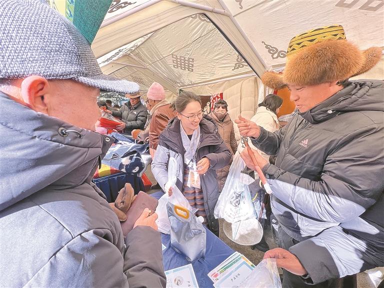 དབང་པོ་སྐྱོན་ཅན་གྱི་ལག་ཤེས་རིག་གནས་བསམ་བཀོད་ཐོན་རྫས་ཀྱི་ཁྲོམ་བཀྱག་གིས་མི་མང་པོའི་ཡིད་དབང་འཕྲོགས་ནས་ལྟ་མཁན་གྱི་རྒྱུན་ཆད་རྒྱུ་མེད། བསླས་འཐག་དང་། བརྐོས་མའི་རིག་གནས་བསམ་བཀོད་ཀྱི་ཐོན་རྫས་མང་པོ་གྲལ་འགྲིག་པོར་བསྒྲིགས་ཡོད་པ་དང་། འདོགས་ཆས་ལ་བཟོ་བཀོད་ལེགས་པའི་གཟི་དང་བཀྲ་ཤིས་རྟགས་བརྒྱད་ཀྱི་རི་མོས་བརྒྱན་པ་ལས་མི་རིགས་ཀྱི་ཡུལ་སྲོལ་རིག་གནས་ཀྱི་ནང་དོན་ཟབ་མོ་མཚོན་པ་མ་ཟད། བོད་བཟོའི་འཇུར་རྟ་ཡུ་རིང་ལག་བཙེམས་མའི་གཞི་ལུག་ལྤགས་ལ་བཀྲག་ཆེ་བའི་ཚོན་མདོག་དམར་ནག་བསྡེབས་ཏེ་འཚེམ་དྲུབ་རི་མོས་བརྒྱན་པས་བོད་ལུགས་རི་མོའི་ཉམས་དོད་པའི་ཁར་ཞབས་ལ་དྲོ་ཞིང་བཟོ་ལྟ་མཛེས་པས་གྲོང་མི་མང་པོས་འཚང་ཁ་ཤིག་ཤིག་ངང་ཉོ་གི་ཡོད། ཉེ་འགྲམ་དུ་ཡོད་པའི་མངོན་མིན་རིག་གནས་བསམ་བཀོད་ཐོན་རྫས་ཁྲོམ་བཀྱག་ནི་ཀུན་གྱིས་ལྟ་རིན་ཡོད་པའི་གནས་ཤིག་ཏུ་གྱུར་ཞིང་། དེ་གའི་མངོན་མིན་རིག་གནས་ཤུལ་བཞག་གི་མཚོན་བྱེད་རང་བཞིན་གྱི་རྒྱུན་འཛིན་པས་རྟ་ལོ་བརྗོད་བྱར་བྱས་ནས་བཟོས་པའི་བེད་སྤྱོད་དང་ཉར་ཚགས་ཀྱི་རིན་ཐང་ལྡན་པའི་རྒྱ་བོད་ཡིག་རིགས་ཤན་སྦྱར་གྱི་ལོ་ཐོས་ཀུན་གྱི་ཡིད་དབང་འཕྲོག དེ་བས་དམིགས་བསལ་ཁྱད་ཆོས་ལྡན་པ་ཞིག་ནི་མངོན་མིན་རིག་གནས་ཤུལ་བཞག་གི་ལག་ཤེས་ཐོན་རྫས་བོད་རྒྱ་ཤན་སྦྱར་གྱི་ཆ་ཡིག་དང་གཞི་དམར་པོར་སྣག་ཚ་སེར་པོས་བྲིས་པའི་བོད་ཡིག་གི་ལོ་གསར་སྨོན་ཚིག་ནི་ཁྱིམ་ཚང་མི་ཉུང་བས་ལོ་གསར་ལ་ཁྱིམ་གྱི་གྱང་ལྡེབས་སུ་འགེལ་བྱེད་ཀྱི་གདམ་ག་དང་པོར་གྱུར་ཡོད།