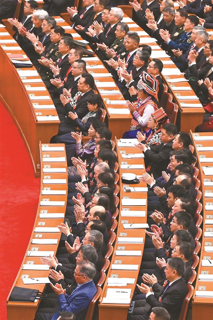 ཟླ་3ཚེས་4ཉིན་གྱི་ཕྱི་དྲོར། རྒྱལ་ཡོངས་སྲིད་གྲོས་སྐབས་བཅུ་བཞི་པའི་ཚོགས་འདུ་ཐེངས་བཞི་པ་མི་དམངས་ཚོགས་ཁང་ཆེ་མོར་གཟབ་རྒྱས་ངང་འགོ་ཚུགས་པ་རེད། ཁ་བའི་ཁྲོད་ཀྱི་མི་དམངས་ཚོགས་ཁང་ཆེ་མོ་ནི་དེ་བས་བརྗིད་ཉམས་ལྡན་ཞིང་། བོད་ཀྱི་ཨུ་ཡོན་ཚོས་ཐབས་ཇུས་བསྣམས་ཏེ་རྒྱལ་ཡོངས་སྲིད་གྲོས་ཀྱི་ཨུ་ཡོན་2000ལྷག་ཙམ་དང་མཉམ་དུ་ཚོགས་འདུར་ཞུགས་ནས་རྒྱལ་ཁབ་ཀྱི་དོན་ཆེན་མཉམ་དུ་གླེང་བ་དང་འབྱུང་འགྱུར་ཕྱོགས་སུ་མཉམ་དུ་བསྐྱོད་རྒྱུ་རེད།