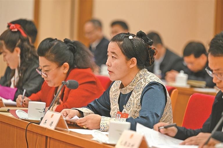 རྒྱལ་ཡོངས་ཚོགས་འདུ་གཉིས་ལ་ཞུགས་མཁན་རང་ལྗོངས་ཀྱི་སྲིད་གྲོས་ཨུ་ཡོན་རྣམས་རིགས་ཁོངས་ཁག་གི་ཚོགས་ཆུང་གྲོས་བསྡུར་ནང་ཞུགས་བཞིན་པ།