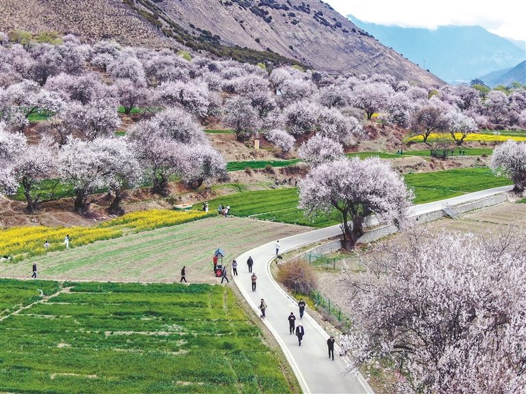 ཟླ་4ཚེས་3ཉིན། ཉིང་ཁྲི་གྲོང་ཁྱེར་གྱི་ཁམ་བུའི་མེ་ཏོག་ཡུལ་སྐོར་རིག་གནས་དུས་ཆེན་སྐབས་ཉེར་གསུམ་པ་དུས་ཆད་བཞིན་འཚོགས་ཤིང་། དཔྱིད་ཀར་མེ་ཏོག་ལ་ལྟ་བའི་ཐབས་ཇུས“རྩེར་སོན”ལུ་གུ་རྒྱུད་བཞིན་འགོད་པའི་ཚ་རླབས་རྒྱལ་ཡོངས་སུ་འཕྱུར་གཤིས། གངས་ལྗོངས་ས་མཐོའི་སྔོ་ལྗང་མཛེས་ལྗོངས་ཁུལ་དེས་སླར་ཡང་ཡུལ་སྐོར་བ་མང་པོའི་ཡིད་ཀྱི་བརྟན་པ་ཅིག་ཅར་དུ་འཕྲོག