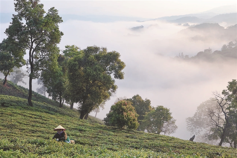 འདི་ནི་ཇ་ལས་ཞིང་པས་ཧུའུ་པེ་ཞིང་ཆེན་ཙི་ཀུའེ་རྫོང་མའོ་ཕིང་གྲོང་རྡལ་གྱི་ཇ་ཞིང་ར་བར་ཇ་ལོ་སོས་པ་འཐུ་བཞིན་པ།