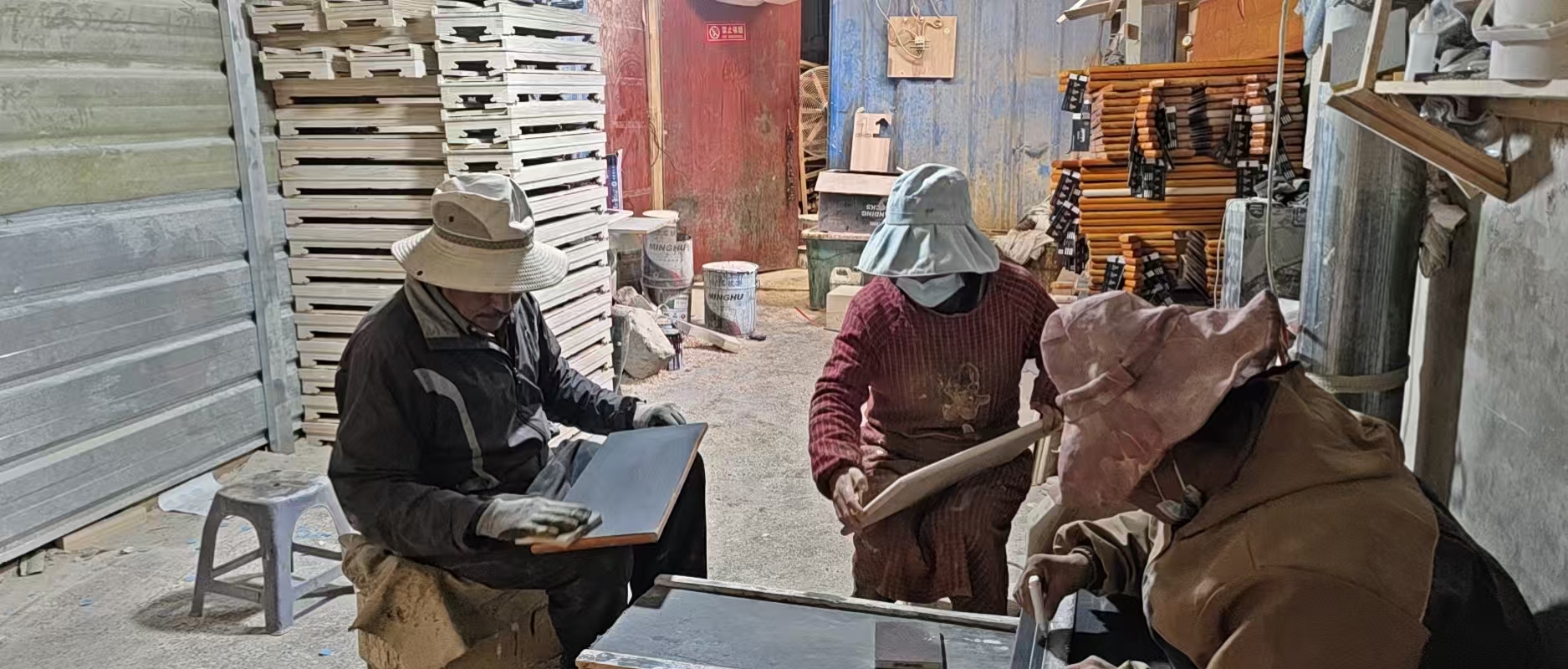 འདི་ནི་བཟོ་གྲྭའི་ལས་མིས་བྱང་ཤིང་བཟོ་བཞིན་པ།