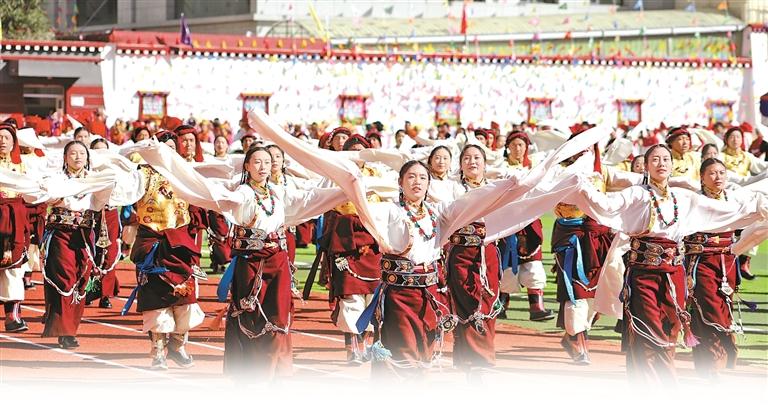 གཙང་གསུམ་ཇ་རྟའི་རིག་གནས་སྒྱུ་རྩལ་དུས་ཆེན་སྐབས་བཅུ་གཅིག་པའི་འགོ་ཚུགས་མཛད་སྒོར་ཆབ་མདོའི་རྫོང(ཆུས)11ནས་ཡོང་བའི་མང་ཚོགས་ཀྱི་འཐུས་མི་ལས་གྲུབ་པའི་གཟིགས་འབུལ་རུ་སྟར་གྲུ་བཞིས་གླུ་ལེན་གར་འཁྲབ་ཀྱིས་ལུས་རྩལ་ཐང་ལ་སྐོར་བ་གཅིག་བརྒྱབ་ནས་སྤྲོ་སེམས་འཁོལ་པོས་སྟེང་ཆེན་གྱི་རལ་པ་དང་། དཔའ་ཉམས་དོད་པའི་རི་བོ་ཆེའི་གླིང་བྲོ། གར་གྱི་སྟངས་སྟབས་མཛེས་པའི་སྨར་ཁམས་ཀྱི་འབའ་གཞས་སོགས་མངོན་མིན་རིག་གནས་ཤུལ་བཞག་ཞབས་བྲོ་འཁྲབ་སྟེ། དེ་གར་ཡོད་པའི་ལས་བྱེད་པ་དང་མང་ཚོགས་དང་དེ་བཞིན་ལས་རིགས་ཁག་གི་སྐུ་མགྲོན་ཚོར་ཆབ་མདོའི་ཐུན་མོང་མ་ཡིན་པའི་སྲོལ་རྒྱུན་རིག་གནས་དང་སྐུ་མགྲོན་ལ་སེམས་རྩ་འཁོལ་བའི་བརྩེ་བ་མངོན་ཡོད།