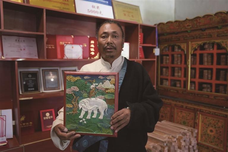“ཕུ་གསུམ་ཤིང་བརྐོས་ཀྱི་ལས་རིམ་གྲ་རྒྱས་ལ་ལག་ཤེས་ཞིབ་ཚགས་པ་མ་ཟད། རྩེར་སོན་པས་ཉེ་རིང་གང་སར་སྐད་གྲགས་ཆོད་ཡོད། ཤིང་ཆ་ལེགས་འདེམས་ནས་པང་ལེབ་བཟོ་བ་དང་། བརྐོས་རྒྱག་པ། ཞིབ་ཚགས་བྱེད་པ་བཅས་དང་། དེ་ནས་མཐར་སྤུས་ལེགས་ཀྱི་པར་ཤིང་བཟོ་བའི་བར། ཞིབ་ཕྲའི་ལས་རིམ་30ལྷག་ཙམ་བརྒྱུད་དགོས་པ་མ་ཟད། ཚང་མ་ལག་པ་རང་ལ་བརྟེན་དགོས་ཀྱི་ཡོད”ཅེས་ཕུ་གསུམ་ཤིང་བརྐོས་སྐོར་གླེང་སྐབས་སྲི་ཆོས་ལ་ཉམས་མྱོང་ཕུན་སུམ་ཚོགས་པོ་ཡོད། ཕུ་གསུམ་ཤིང་བརྐོས་ཀྱི་ལས་རིམ་དེ་དག་གིས་ལག་ཤེས་ལ་ཚོད་བགམ་བྱེད་པ་མ་ཟད། རྒྱུན་འཛིན་པའི་བཟོ་བོའི་སྙིང་སྟོབས་ལ་དེ་བས་ཀྱང་ཉམས་ཚོད་ལེན་གྱི་ཡོད་ཅེས་སྲི་ཆོས་ཀྱིས་བཤད།