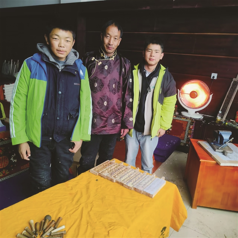 བོད་རང་སྐྱོང་ལྗོངས་རིམ་པའི་སྤོ་ལོ་ཤིང་བརྐོས་ཀྱི་རྒྱུན་འཛིན་པ་རྣམ་རྒྱལ་དང་ཀརྨ་སྒར་བྲིས་ལུགས་ཀྱི་ཐང་གའི་རྒྱུན་འཛིན་པ་བསམ་གྲུབ་ནོར་བུ་གཉིས་ཆབ་མདོ་གྲོང་ཁྱེར་ལས་རིགས་ལག་རྩལ་སློབ་གྲྭའི་འཆད་ཁྲིད་དགེ་རྒན་དུ་གདན་དྲངས། རྣམ་རྒྱལ་གྱིས་སྤོ་ལོ་ཤིང་བརྐོས་ལག་ཤེས་སློབ་པ་དེས་ལག་ཤེས་དེ་བཟོ་ཁང་ནས་ལས་རིགས་སློབ་གྲྭའི་སློབ་གསོར་འགྱུར་བའི་བར་གྱི་མཆོང་སྐྱོད་བྱུང་བ་མཚོན་ཡོད།
