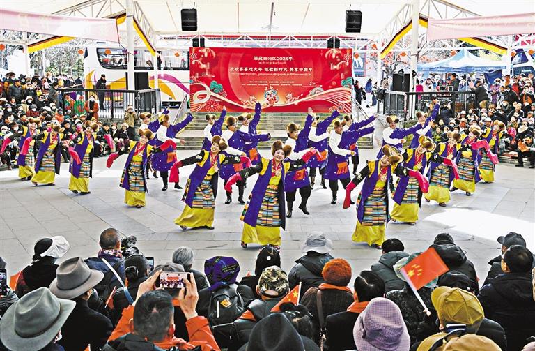 ཚེས་24ཉིན་གྱི་སྔ་དྲོར་ལྗོངས་ཏང་ཨུད་དྲིལ་བསྒྲགས་པུའུ་དང་། རང་སྐྱོང་ལྗོངས་ཤེས་དཔལ་གཞུང་དོན་ཁང་། རང་སྐྱོང་ལྗོངས་རིག་གནས་དང་ཡུལ་སྐོར་ཐིང་བཅས་ཀྱིས་གཙོ་གཉེར་བྱས་པ་དང་། ལྗོངས་གླུ་གར་ཚོགས་པ་དང་ལྗོངས་ལྷ་མོ་ཚོགས་པ་སོགས་ཚན་པས་གཉེར་འགན་འཁུར་བའི“དགའ་སྤྲོའི་ངང་ནས་ལོ་གསར་གཏོང་། དུས་རབས་གསར་པར་བསྟོད་གླུ་ལེན་པ་དང་ཀྲུང་གོའི་ལོ་གསར་མཉམ་དུ་གཏོང”ཞེས་པའི་བརྗོད་དོན་གཙོ་བོའི་རིག་གནས་དང་ཡུལ་སྐོར་བྱེད་སྒོ་ལྷ་སའི་རྫོང་རྒྱབ་ཀླུ་ཁང་དུ་སྤེལ་བ་རེད། ལྗོངས་གླུ་གར་ཚོགས་པ་དང་། ལྗོངས་ལྷ་མོ་ཚོགས་པ། ལྗོངས་གཏམ་བརྗོད་ཟློས་གར་ཚོགས་པ་བཅས་ཀྱིས་ཞབས་བྲོ་དང་། གླུ་གཞས། འཁྲབ་ཚན་ཐུང་ངུ་སོགས་རིག་རྩལ་ལེ་ཚན་སྣ་ཚོགས་འཁྲབ་སྟོན་བྱས་པར་དགའ་བསུ་ཡང་ཡང་ཐོབ་ཅིང་། དེ་གར་མང་ཚོགས་ཀྱི་ཐལ་མོའི་རྡེབ་སྒྲ་དང་དགའ་འབོད་ཀྱི་སྐད་སྒྲས་ཁེངས།