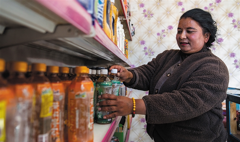 འདི་ནི་བུད་མེད་གཅིག་གིས་རང་ཁྱིམ་གྱི་ཚོང་ཁང་ནང་ཚོང་ཟོག་སྒྲིག་བཞིན་པ།