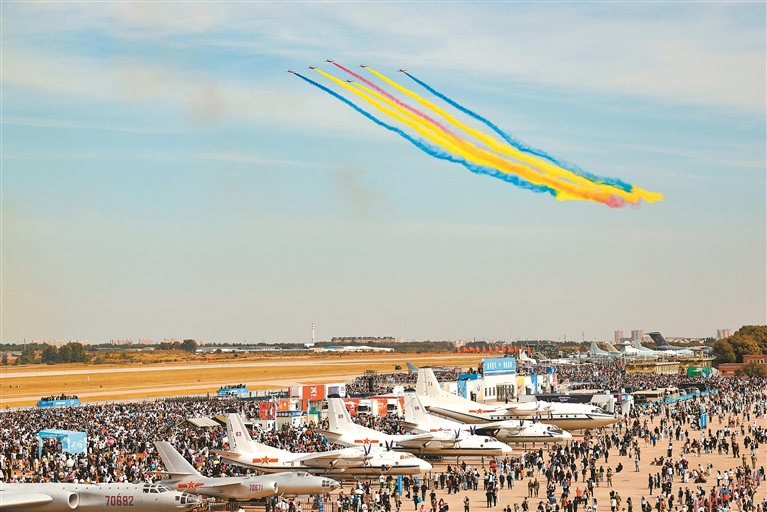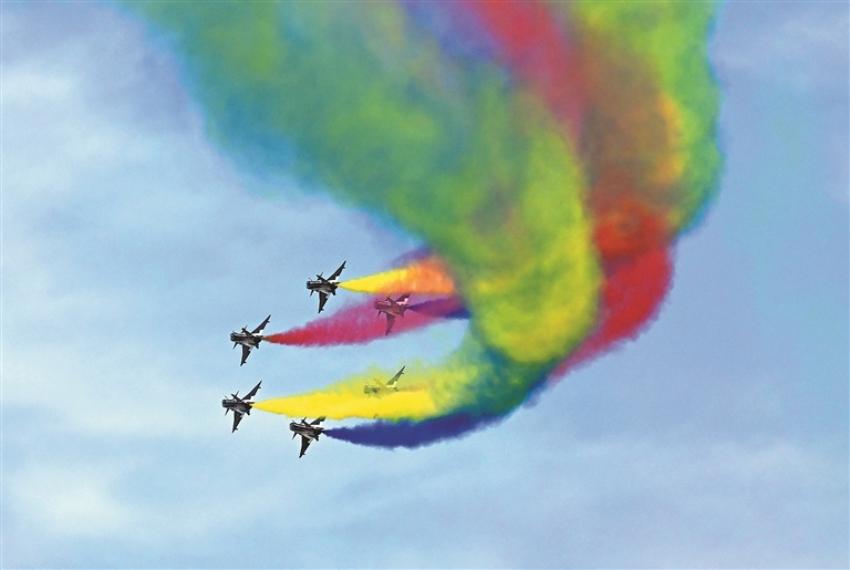 མཁའ་དམག་གི་དངོས་འཐབ་ཅན་གྱི་སྦྱོང་བརྡར་གྱི་གྲུབ་འབྲས་མངོན་ཆེད། བྱེད་སྒོར་འཁྲབ་སྟོན་གྱི་ནང་དོན་ཁག་10ལྷག་ཙམ་བཀོད་སྒྲིག་བྱས་ཡོད་པ་དང་། རིགས་མི་འདྲ་བའི་གནམ་གྲུ་16མཁའ་དབྱིངས་ཀྱི་འགྲེམས་སྟོན་ལ་ཞུགས་པ་མ་ཟད། ད་དུང་སྒྲིག་ཆས་བརྒྱ་ཙམ་ས་ཐོག་གི་འགྲེམས་སྟོན་ལ་ཞུགས་ཡོད་པ་རེད།