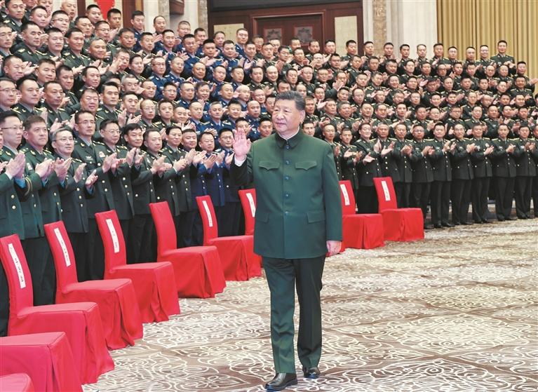 དེ་ཉིན་ཕྱི་དྲོར། ཞི་ཅིན་ཕིང་གིས་ཝུའུ་ལུའུ་མུའུ་ཆི་རུ་བཅའ་སྡོད་དཔུང་སྡེའི་ཧྲང་ཤའོ་དམག་དཔོན་ཡན་གྱི་འགོ་ཁྲིད་ལས་བྱེད་པ་དང་། གཞི་རིམ་གྱི་སྔོན་ཐོན་དཔེ་བཟང་བ་དང་ཞི་བའི་ལས་འགན་འཁུར་མཁན་ཁག་གཅིག་ལ་བྱམས་བརྩེའི་ངང་མཇལ་འཕྲད་གནང་ཞིང་། ཁོང་གིས་ཏང་ཀྲུང་དབྱང་དང་ཀྲུང་དབྱང་དམག་ཨུད་ཀྱི་ཚབ་ཞུས་ནས་ཤིན་ཅང་དུ་བཅའ་སྡོད་དཔུང་སྡེའི་དཔོན་དམག་ཡོངས་ལ་ལྷག་བསམ་ཟོལ་མེད་ཀྱི་འཚམས་འདྲི་གནང་བ་མ་ཟད་ལྷན་བཞུགས་དྲན་རྟེན་སྐུ་པར་ཡང་བསྐྱོན་པ་རེད།