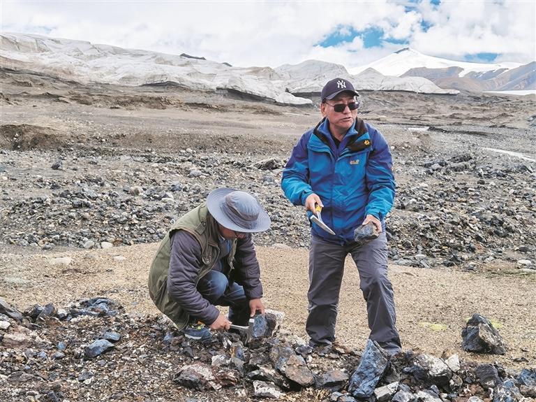 རྒན་དོན་གྲུབ་ལགས་དང་ཁོང་གི་ལས་རོགས་ཀྱིས་སྨན་རྒྱུ་འཚོལ་བཞིན་པ།