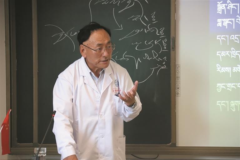 དཀར་ཆ་དོད་ཅིང་སྒྲིག་བཀོད་ཆ་ཚང་བའི་སློབ་ཁང་ནང་རྒན་དོན་གྲུབ་ལགས་ཀྱིས《དཔལ་ལྡན་རྒྱུད་བཞིའི》བསླབ་གཞི་ཨ་སློག་བརྒྱབ་སྟེ། “ནད་རྟགས་དབྱེ་འབྱེད་སྨན་བཅོས”ཀྱི་རི་མོར་མཛུབ་མོ་བཙུགས་ནས་འགྲེལ་བཤད་རྒྱག་པ་དང་། སྐབས་འགར་ནག་པང་སྟེང་གི་གྲང་སེལ་སྦྱོར་བ་བསྟན་པ་ཞེས་པའི་གསོ་བ་རིག་པའི་སྐོར་བརྗོད་ཀྱིན་སྐད་གསང་མཐོན་པོས“སློབ་ཕྲུག་ཚོ། ས་མཐོའི་ལྗོན་ཤིང་ཡོད་དོ་ཅོག་ལ་རང་སོ་སོར་འཚམ་པའི་ས་རྒྱུ་ཡོད་པ་ལྟར། གསོ་བ་རིག་པའི་གཞུང་ལུགས་ནང‘མི་རེར་སྨན་ཐོ་རེ’ཡོད་དགོས”ཞེས་བཀའ་སློབ་གནང་། དེ་ལས་རྒན་ལགས་ཁོང་ནི་གོ་བ་ལེན་དཀའ་བའི་རིགས་པའི་གཞུང་ལུགས་དག་འཚོ་བ་དངོས་དང་ཟུང་འབྲེལ་གྱིས་སློབ་ཁྲིད་བྱེད་མཁས་པའི་དགེ་རྒན་ཞིག་ཡིན་པ་མཐོང་ཐུབ།