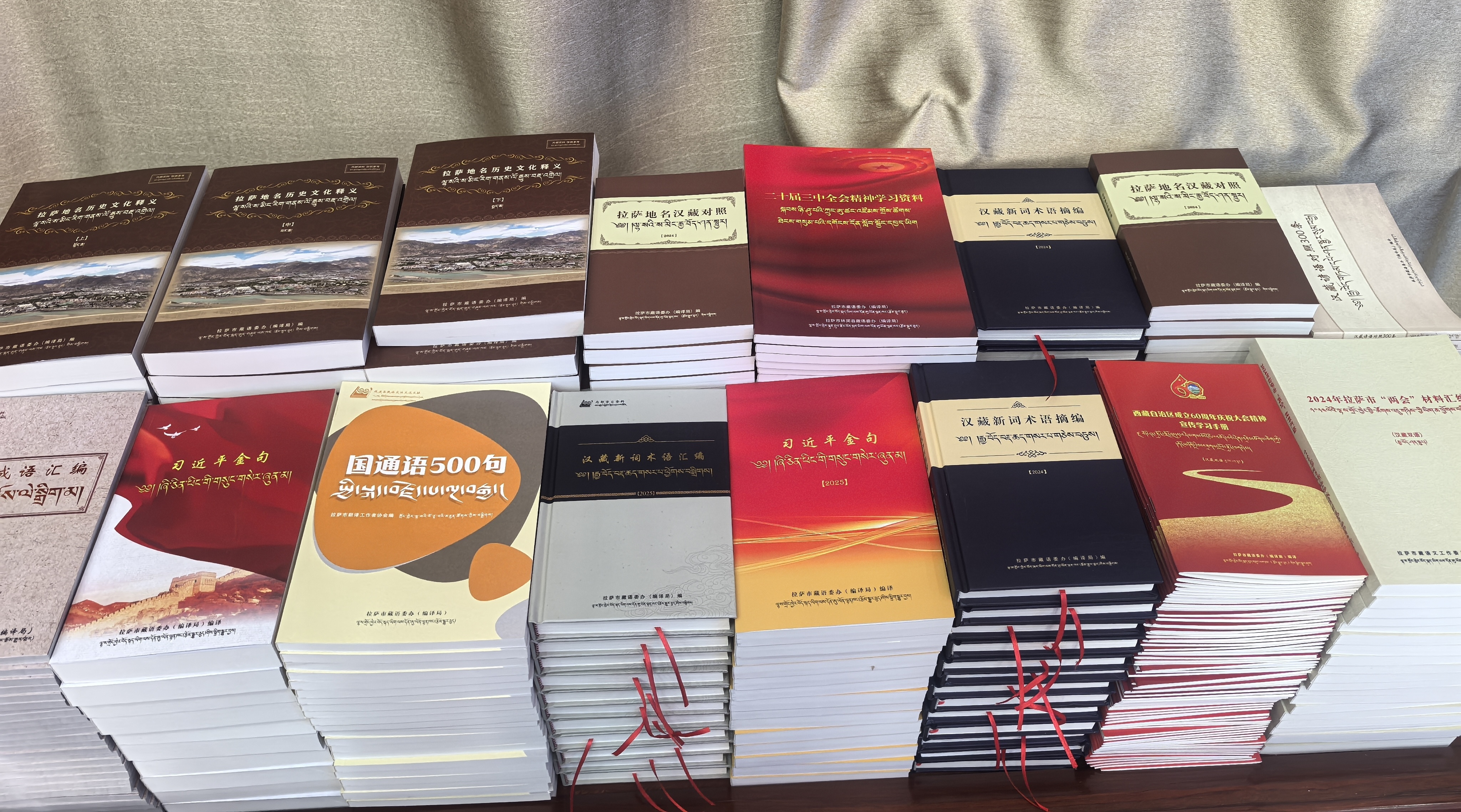 ཤེས་རྟོགས་བྱུང་བར་གཞིགས་ན་ད་ཐེངས་ཀྱི་བྱེད་སྒོའི་ཐོག་ལྷ་ས་གྲོང་ཁྱེར་བོད་སྐད་ཡིག་ལས་དོན་ཨུ་ཡོན་ལྷན་ཁང(རྩོམ་སྒྱུར་ཅུས)གིས་ཉེ་བའི་ལོ་གསུམ་རིང་རྩོམ་སྒྲིག་དང་དཔེ་སྐྲུན་བྱས་པའི《ཞི་ཅིན་ཕིང་གི་གསུང་གསེར་ཞུན་མ》དང《སྤྱི་སྐད་བརྗོད་པ་ལྔ་བརྒྱ》《རྒྱ་བོད་བརྡ་ཆད་གསར་པ་ཕྱོགས་བསྒྲིགས》《བོད་རང་སྐྱོང་ལྗོངས་དབུ་བརྙེས་ནས་ལོ་ངོ་60འཁོར་བའི་རྟེན་འབྲེལ་ཚོགས་ཆེན་གྱི་དགོངས་དོན་དྲིལ་བསྒྲགས་སློབ་སྦྱོང་ལག་དེབ》《སྐབས་ཉི་ཤུ་པའི་ཀྲུང་ཨུ་ཚང་འཛོམས་གྲོས་ཚོགས་ཐེངས་གསུམ་པའི་དགོངས་དོན་སློབ་སྦྱོང་དཔྱད་ཡིག》སོགས་དཔེ་དེབ་ཁག་བཅུ་གཉིས་ལྷུན་གྲུབ་རྫོང་གི་ཤང་དང་གྲོང་རྡལ། ཚན་པ། སྡེ་ཁུལ། སློབ་གྲྭ དམག་དཔུང་། དགོན་སྡེ་བཅས་ཁག་དྲུག་ལ་སྤྲད་ཡོད།