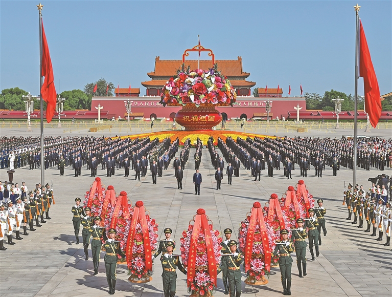 ཤིན་ཧྭ་གསར་འགྱུར་ཁང་པེ་ཅིང་ནས་ཟླ་9ཚེས་30ཉིན་གློག་འཕྲིན་འབྱོར་གསལ། ཚེས་30ཉིན་གྱི་སྔ་དྲོར། སྔོན་གཤེགས་དཔའ་བོའི་དྲན་གསོའི་ཉིན་མོར་མི་དམངས་ཀྱི་དཔའ་བོར་མེ་ཏོག་སི་ར་འབུལ་བའི་མཛད་སྒོ་པེ་ཅིང་གནམ་བདེ་སྒོ་མོ་ཆེའི་ཐང་ཆེན་དུ་གཟབ་རྒྱས་ངང་འཚོགས་ཤིང་། ཏང་དང་རྒྱལ་ཁབ་ཀྱི་འགོ་ཁྲིད་པ་ཞི་ཅིན་ཕིང་དང་། ལི་ཆང་། ཀྲའོ་ལེ་ཅི། ཝང་ཧུའུ་ཉིང་། ཚའེ་ཆི། ཏིང་ཤུའེ་ཞང་། ལི་ཞི། ཧན་ཀྲེང་སོགས་ཀྱིས་ལས་རིགས་ཁག་གི་འཐུས་མི་དང་ལྷན་དུ་མཛད་སྒོར་ཞུགས་པ་རེད།