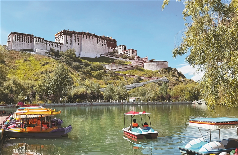 འདི་ནི་གྲོང་མི་དང་ཡུལ་སྐོར་བས་རྫོང་རྒྱབ་ཀླུ་ཁང་དུ་གྲུ་བཏང་ནས་ལྟ་སྐོར་བྱེད་བཞིན་པ།