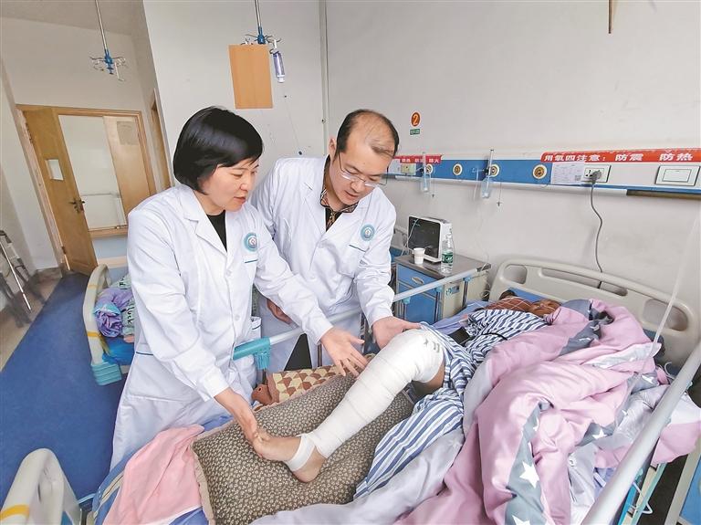 འདི་ནི་ས་མཐོའི་རུས་ཚིགས་ནད་ཕོག་མཁན་གྱིས་ཆིང་ཏའོ་གྲོང་ཁྱེར་གྲོང་བཙུགས་སྨན་ཁང་ཤར་མའི་རུས་ནད་སྡེ་ཁག་གི་ཀྲུའུ་རེན་ཏའེ་ཧྲི་ཡིའུ(གཡས)ལ་ཐུགས་རྗེ་ཆེ་ཞུ་བཞིན་པ།(ཆིང་ཏའོ་བོད་སྐྱོར་ལས་བྱེད་པ་ཝང་ཅན་ལེང་གིས་མཁོ་འདོན་བྱས)