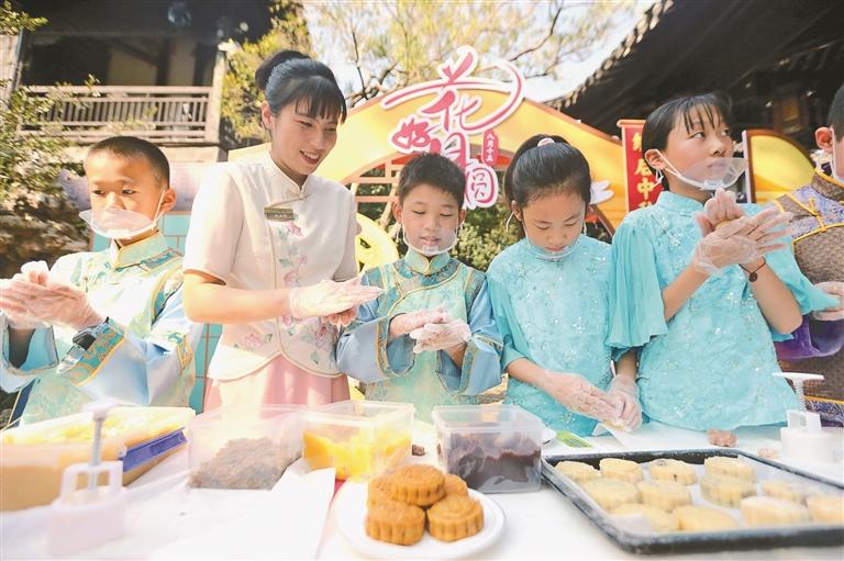 འདི་ནི་ཟླ་10ཚེས་6ཉིན་ཅང་སུའུ་ཞིང་ཆེན་དབྱང་ཀྲོའུ་གྲོང་ཁྱེར་ཧོ་ཡོན་མཛེས་ལྗོངས་ཁུལ་དུ་ལས་དོན་མི་སྣའི་མཛུབ་ཁྲིད་འོག་གྲོགས་པོ་ཆུང་ཆུང་ཚོས་ཟླ་མཆོད་བག་ལེབ་བཟོ་སྟངས་སྦྱོང་བཞིན་པ།