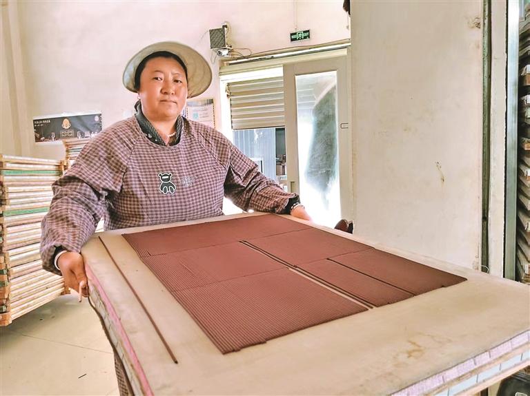 འདི་ནི་ཆུ་གསུམ་རྫོང་གི་སྤོས་ཁེ་ལས་ཀྱི་ལས་མིས་སྤོས་སྒྲིག་བཞིན་པ།